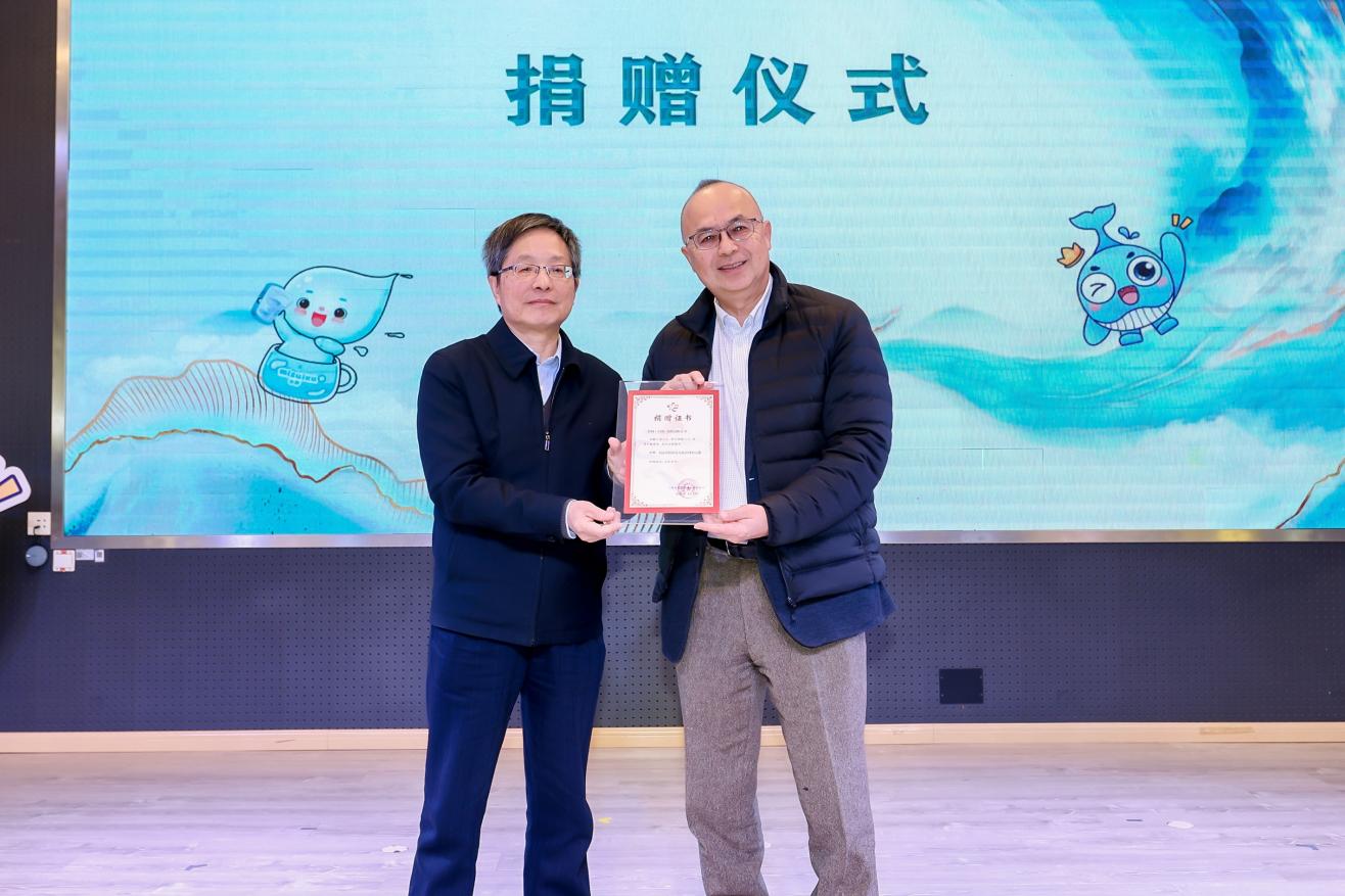 在金山区前京小学“金承水韵・育伴前京”主题活动现场,上海市志愿服务公益基金会为三得利(中国)投资有限公司颁发捐赠证书,致谢企业长期以来对基金会公益事业的倾力支持。活动尾声,与会领导嘉宾共同拉动启航绳,正式启动“水育中国”项目第二个5年行动,开启志愿护水事业新篇章。