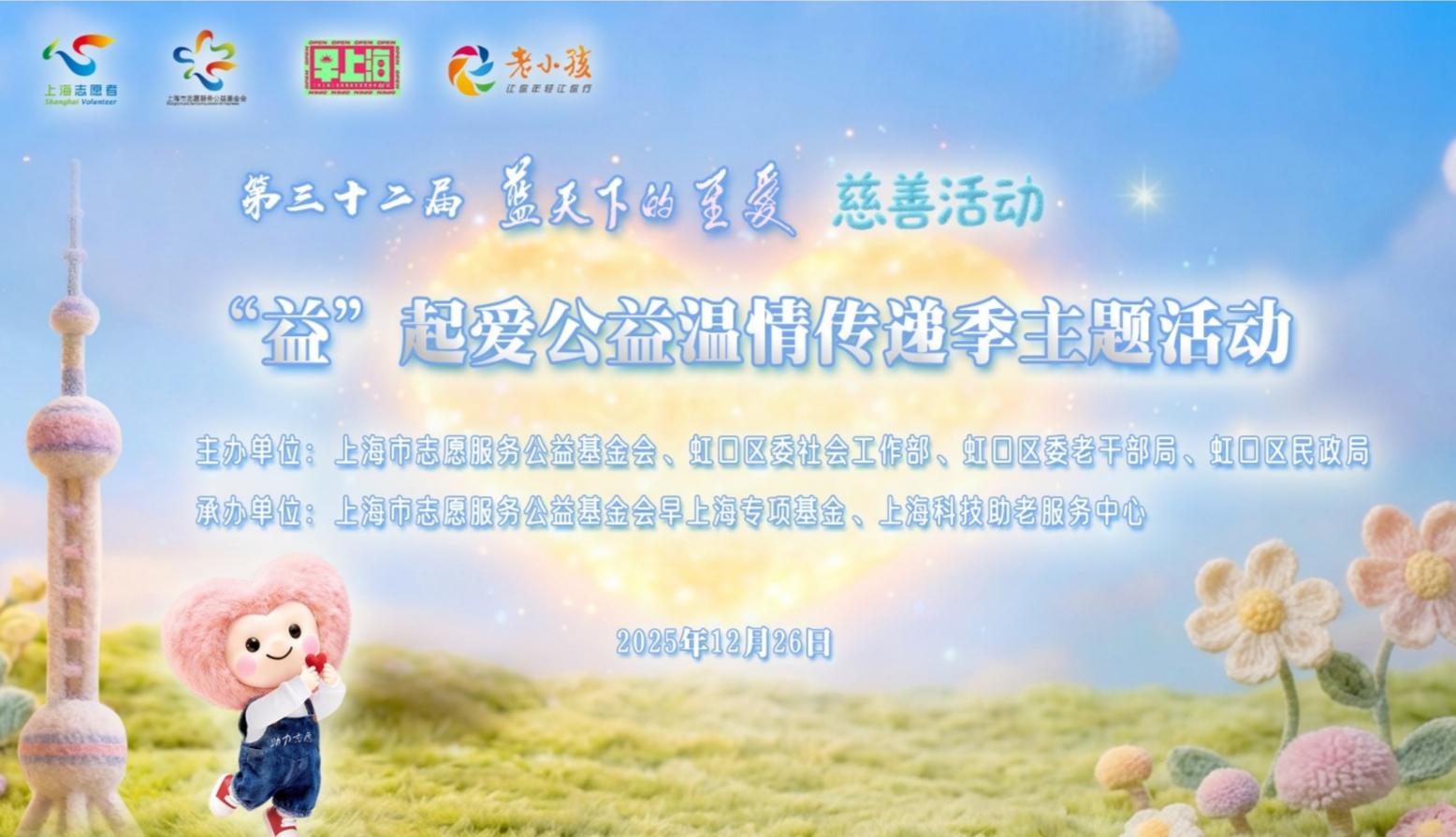 2025年12月26日上午,第三十二届“蓝天下的至爱”慈善活动暨上海市志愿服务公益基金会“益”起爱公益温情传递季主题活动在虹口上滨生活广场暖心展开。本次活动以“助力志愿有新‘益’”为核心,不仅是一场暖冬公益行动,更是对上海市志愿服务公益基金会2025年度的“益起学、益起动、益起捐、益起爱”四大主题公益行动成果的回顾与展示。