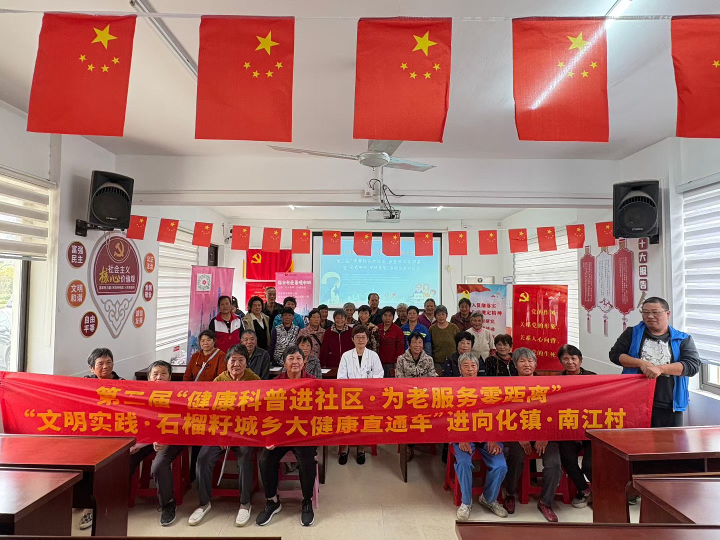 重阳佳节期间,为进一步提高社区老年居民的健康意识,提升老年人的幸福指数,由上海市志愿服务公益基金会崇明区新时代文明实践专项基金支持,上海崇明石榴籽公益发展中心举办的第二届“健康科普进社区·为老服务零距离”崇明区系列活动暨“文明实践·石榴籽城乡大健康直通车”慈善公益志愿服务活动,在崇明区7个乡镇的10个村居陆续开展,把专业医疗关怀和暖心服务送到了老人“家门口”。