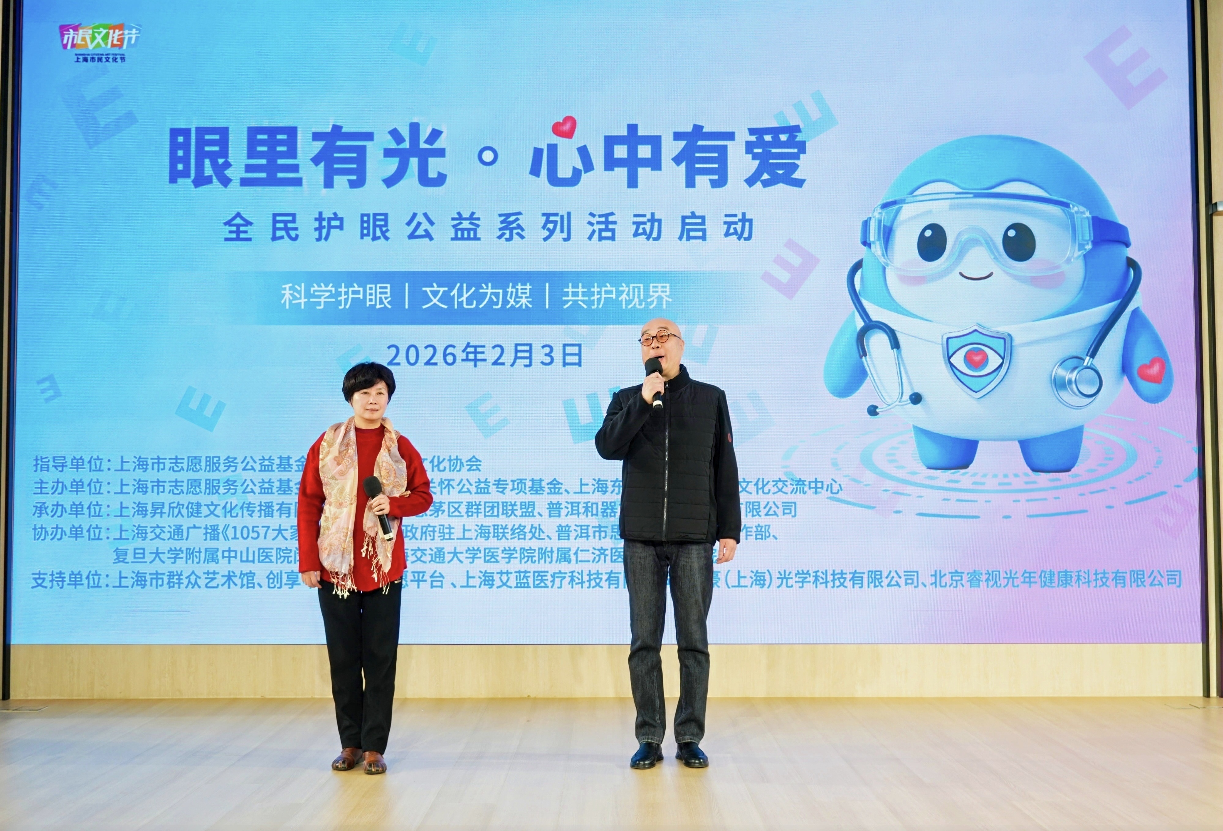 2月3日,“眼里有光 心中有爱”全民护眼公益系列活动启动仪式在上海市群众艺术馆举行。本次活动由上海市志愿服务公益基金会、上海市民文化协会指导,上海市志愿服务公益基金会青少年身心关怀公益专项基金、上海东方青少年国际文化交流中心主办,上海卉锦贸易等多家爱心企业为活动提供支持,共同助力公益事业。