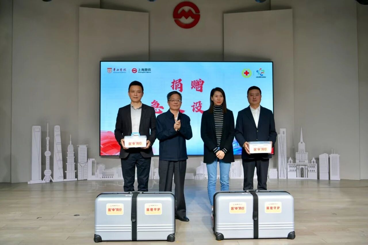 上海地铁第一运营有限公司党委书记熊炜、第三运营有限公司党委书记杨锋权为来自复旦大学附属华山医院等十家医院的志愿者联盟代表获颁医“申”同行讲师聘书;华山医院党委副书记顾宇翔与上海地铁第一运营有限公司党委书记熊炜共同为公民素质提升培训站揭牌;市卫生健康委员会新闻宣传处二级调研员、市卫生健康系统文明办副主任俞军、申通地铁集团文化艺术总监、党委党建工作部部长吴昕毅、华山医院党办主任李妍斐共同发布医“申”同行系列科普第二期,《外伤出血、骨折篇》应急急救手册及《车站应急救助——外伤出血、骨折现场处置操作规程》视频。
