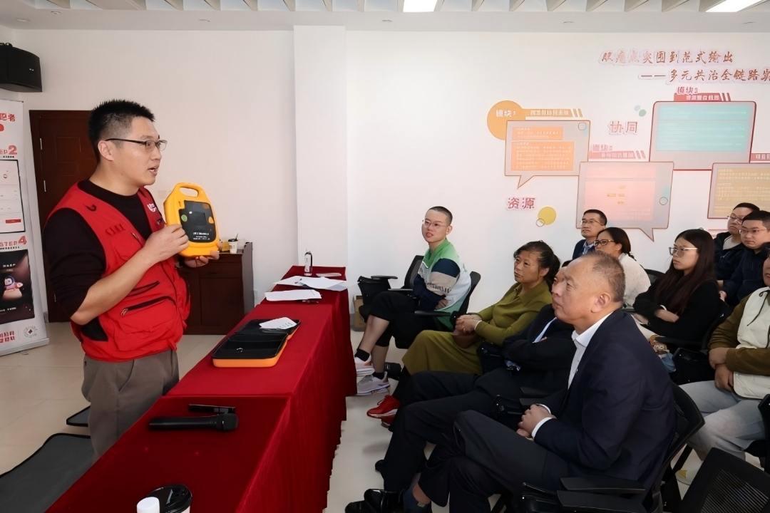 活动中,“上海市5分钟社会急救”志愿服务项目急救导师为社区志愿者开展了AED急救培训,当天首批51名社区网格专员与11个居民楼组长志愿者完成社会急救AED技能培训,并全员获颁《上海市AED急救员》资格证书,助力永康城社区“5分钟社会急救圈”突破建设。同期,善家乐龄助老专项基金的专业志愿者还在社区各特色点位开展了公益律师普法宣讲、公益理发师培训和长者人生故事分享等活动。